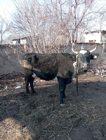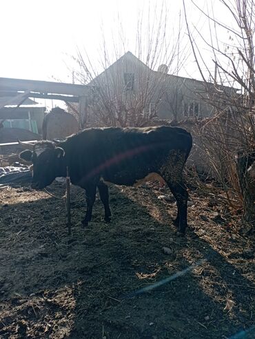 Корова молочного направления. - Масть: темно-коричневая, белые отметины на голове и ушах. - Возраст: визуально молодая, на привязи, спокойная. - Содержание: стойловое, кормление сеном (кормушки-бе...