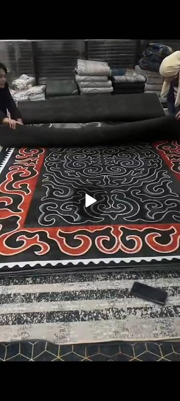 Ковры напольные с яркими этническими и классическими орнаментами. - Дизайны: казахские/восточные узоры с крупными «космоу» и ромбами (серо-белая, бирюзово-серая, красно-черно-белая гамма) и класси...