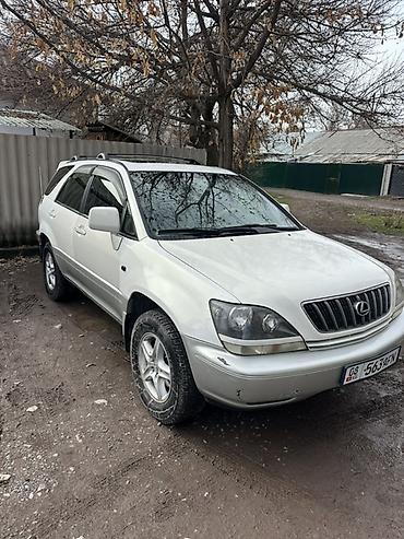 Lexus RX I (XU10), белый жемчуг с серебристым низом. Кузов кроссовер 5 дв., номерные знаки KG. Комплектация и особенности по фото: