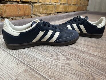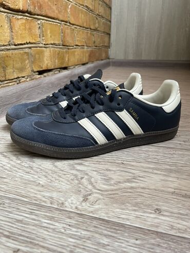 Кроссовки Adidas Samba - Классическая модель с тремя черными полосками и надписью SAMBA на боковой панели. - Верх: сочетание гладкой кожи/эко-кожи и замшевых накладок на мысе для износостойкости. ...
