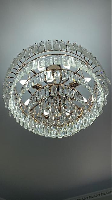 Классическая круглая подвесная люстра с кристаллами - Форма: круглый каскадный плафон с несколькими ярусами подвесок. - Каркас: металл с благородным золотистым покрытием. - Декор: крупные гранёные...