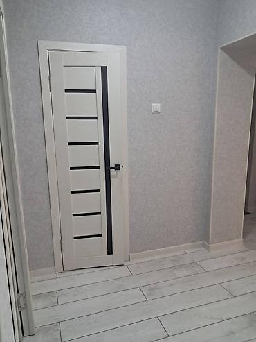 - Межкомнатные двери в едином стиле с горизонтальными вставками, высокий плинтус, ровные стены в нейтральной палитре.
