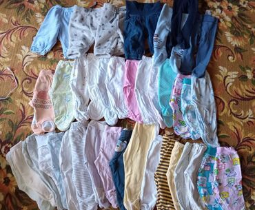 Большой набор детской одежды для новорождённого и до ~0–6месяцев. В составе: - Ползунки и слипы на кнопках/молниях — несколько пар, разные цвета и рисунки. - Бодики и кофточки с длинным и коротким...