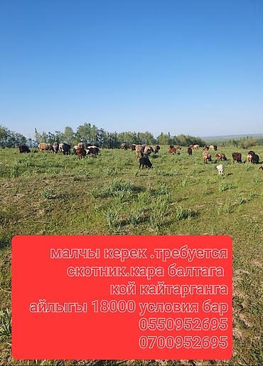 Чуй облусу. Аламедин районуна койчу - сакманчы керек. Айлыгы 40000 сомдон, жашы 35 жаштан жогору. Тажрыйбасы 10 жылдан жогору. телефон на картинке