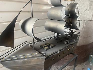 - Авторская металлическая конструкция с детально проработанной палубой: декоративные ядра, пушки, штурвал, релинги.