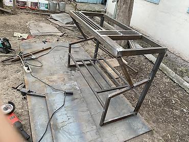 Металлические изделия для дачи и дома: мангалы и вольеры для птиц/грызунов Описание: - Стационарный мангальный стол из стали: жаровня с зубчатым краем и отверстиями под циркуляцию воздуха, площадк...