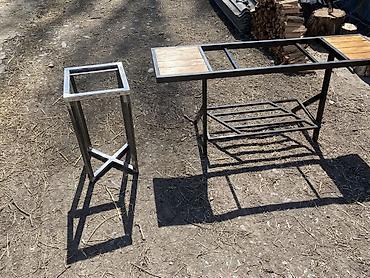 Мангал-стол из металла с рабочими поверхностями из дерева