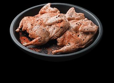 - Полутушки/части перепела — удобны для быстрых стейков, шашлыка, соте и порционных сетов.