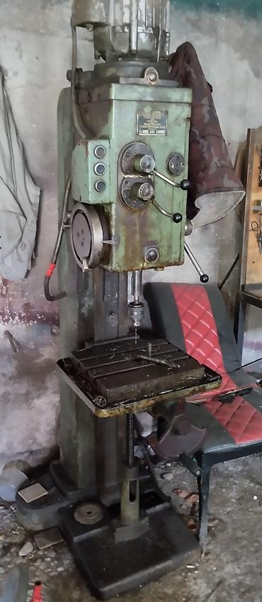 - Вертикально-сверлильный станок на стойке с коробкой скоростей, реверсом и тумблерной панелью управления. Стол с Т‑пазами для крепления приспособлений и тисков, патрон под сверла/развертки.