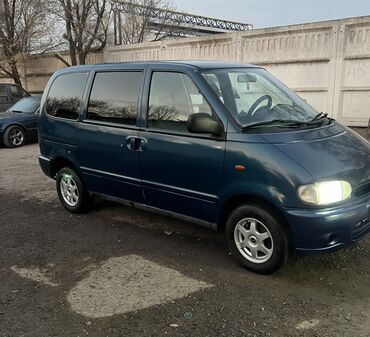 Микроавтобус/микровэн Nissan Serena (кузов C23), сдвижные боковые двери с обеих сторон, темно‑синий цвет. Компоновка 5 дверей, задняя большая дверь багажника с стеклоочистителем. Тонированные стекла по кругу. Компактные размер и высокая крыша — удобен для городской эксплуатации и семейных поездок.