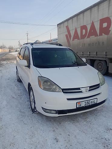 Toyota Sienna (XLE/LE, поколение 2004–2010), белый минивэн с кыргызскими номерами.