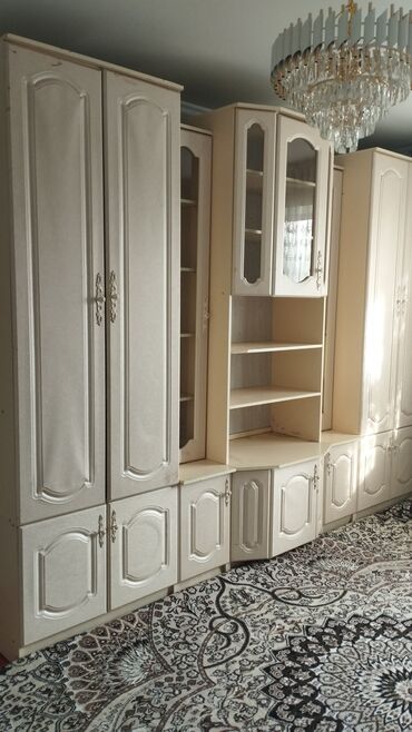 Гостиная стенка классического дизайна, модульная, светлый беж/айвори.