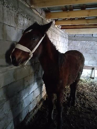 Молодой жеребёнок (примерно 1–1,5 года), масть гнедая с белой отметиной на лбу. Компактное телосложение, ровные ноги, правильная постановка копыт. Спокойный характер, привыкает к недоуздку, даётся вести в поводу. Подойдёт для дальнейшего выращивания под верховую или лёгкую упряжную работу, а также как перспективный компаньон для коневладельца, готового к дальнейшему обучению молодого животного.