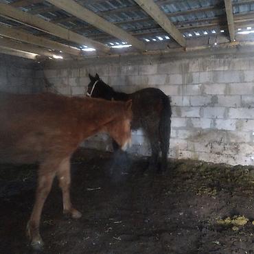 Лошади (несколько голов), содержатся в крытом кирпичном конюшенном помещении с секциями и металлическими перегородками. Характеристики по фото: - Масти: рыжая, гнедо-рыжая и темная (вороная/темно-...