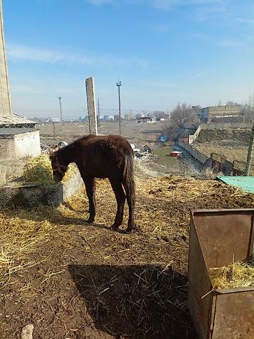 жеребёнок, 6 месяцев, упитанная. Окрас темный, в недоуздке. Подходит для дальнейшего выращивания. Цена: 65 000 сом.