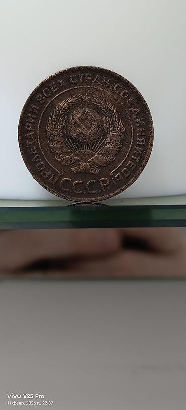 5 копеек СССР, 1933 год - Номинал: 5 копеек - Год чеканки: 1933 - Аверс: герб СССР с лентами, надпись «Пролетарии всех стран, соединяйтесь!», внизу «СССР» - Реверс: крупная цифра «5», надпись «КОП...