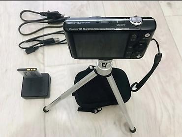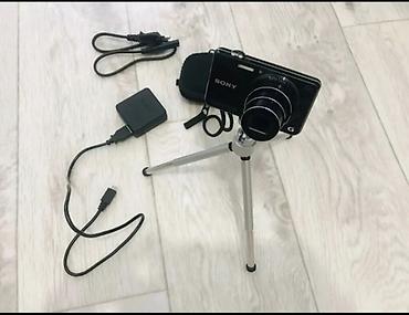 На изображении представлена компактная цифровая камера серии Sony Cyber-shot, установленная на мини-штатив. Судя по надписям на корпусе, это модель DSC-WX200 или DSC-WX220.