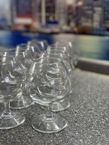 Набор бокалов на ножке — 12 шт. - Материал: прозрачное стекло. - Объём: ориентировочно 150–200 мл (для ликёра/десертов/аперитивов). - Декор: широкая кайма с металлическим блеском по верхнему к...