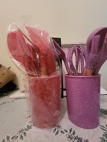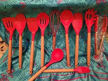 Набор кухонных аксессуаров из силикона с деревянными ручками +