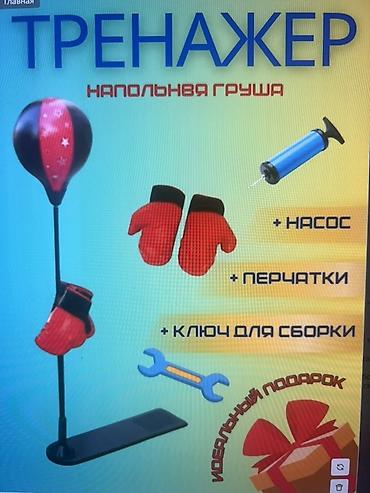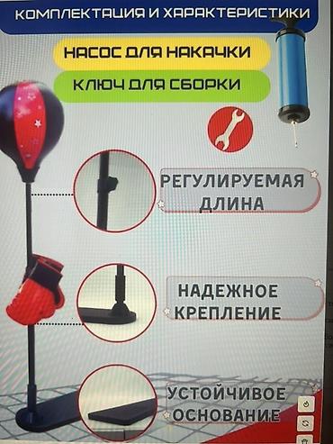- Комплект: груша на стойке с пружиной, боксерские перчатки, ручной насос с иглой, ключ для сборки.