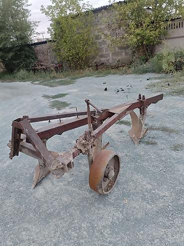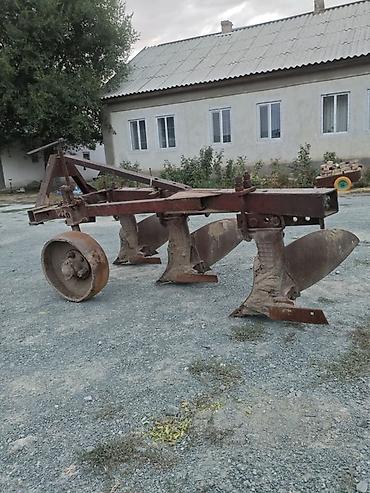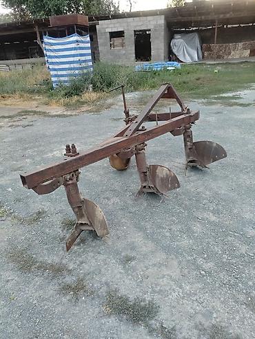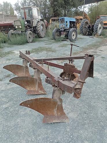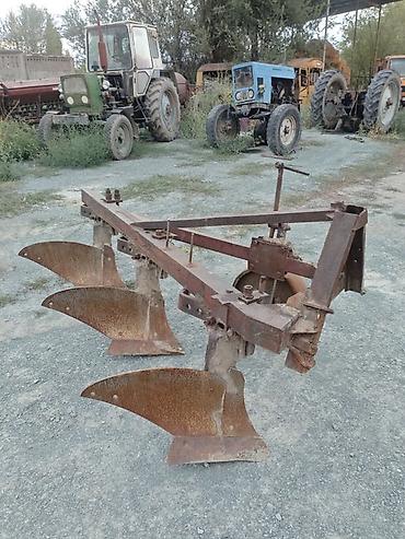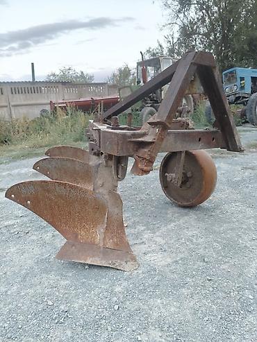 - Конструкция: рама из массивного швеллера, три плужных корпуса с отвалами, передний регулирующий винт, опорное/регулировочное колесо сзади