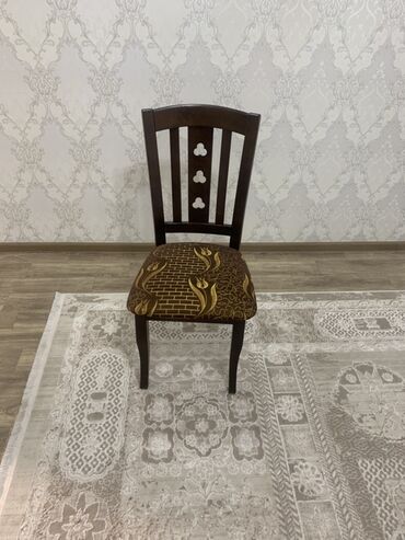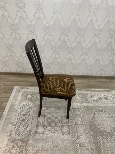 - Сиденье: мягкое, обитка тканью с узором в коричнево‑золотой гамме.