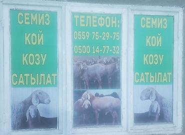 На изображении указано: «Семиз кой козу сатылат» (продаются упитанные овцы и ягнята).