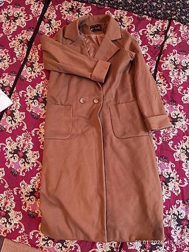 Новое демисезонное пальто тёплого бежевого цвета размера М (42-44) на стройную девушку, прямого кроя. Производство Китай. Длина изделия - 100 см, длина рукава - 55 см. Цена - 1500 сом. Самовывоз...