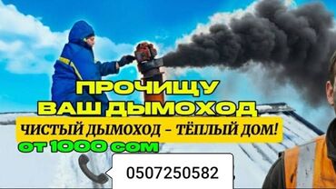 Профессиональная прочистка дымоходов. Что выполняется: - Механическая очистка канала от сажи и налёта. - Удаление засоров для улучшения тяги.Чистка дымахода.мор тазалайбыз.чистка печки и дымоходо...