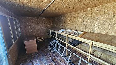Металлический торговый киоск/бытовка - Корпус из металла, прямоугольная форма, одна длинная фасадная сторона с распашными дверями. - На фасаде предусмотрено окно-ставня для выдачи/продажи, сверху ...