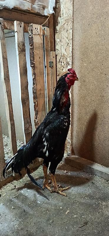 Петух бойцового типа (ориентировочно азиль/шаамо) Описание: - Высокая сухая конституция, длинная шея, крепкий костяк. - Окрас темный с красно-каштановым «плечом», хвост с зеленоватым отливом. - Не...