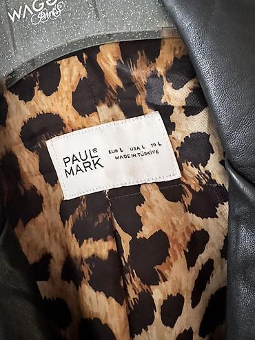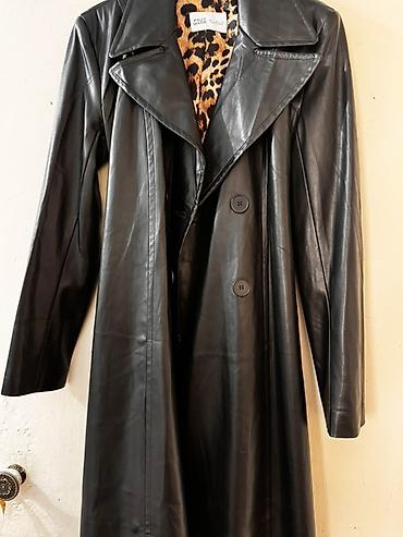 Длинный женский плащ Paul Mark из чёрной эко-кожи.