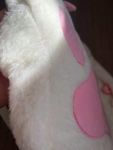- Дизайн: объёмная лапка с розовыми «подушечками» и ушками по краям, передняя часть — мягкий велюр/флис, основа — пушистый искусственный мех молочного цвета.