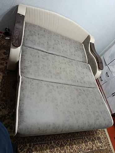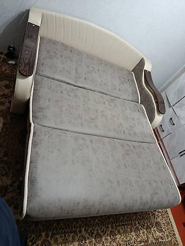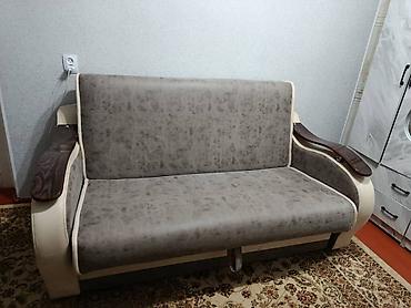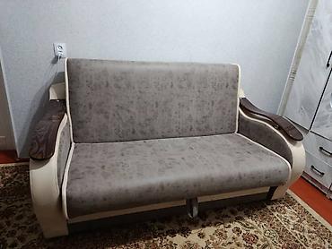 Прямой раскладной диван-кровать светло‑серого цвета. цена крават 27 Тич стол 18 тич - Механизм трансформации: выкатной/еврокнижка — сиденье выдвигается, спинка опускается, образуя ровное спальное м...