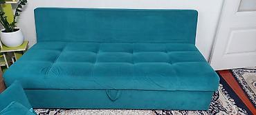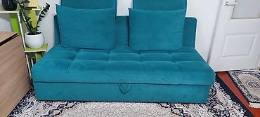 - Обивка: бархатистая/велюровая ткань насыщенного бирюзового цвета, приятная на ощупь, визуально не маркируется