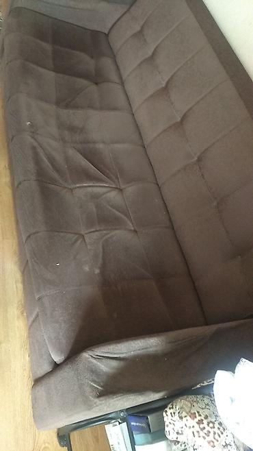 Раскладной диван-кровать - Тип: прямой раскладной диван с механизмом трансформации в полноценное спальное место - Обивка: мягкая ткань/микрофибра темно-коричневого цвета - Дизайн: крупная квадратн...
