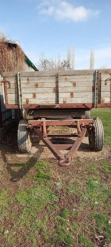 Прицеп тракторный одноосно-двухосный (колёсная формула 4 колеса) с деревянными бортами.