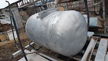 - Металлическая цистерна цилиндрической формы, ориентировочно 800–1200 л (визуально по габаритам легкового прицепа). Толстая сталь, сварные швы по периметру.
