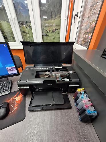 - На фото установлен СНПЧ (система непрерывной подачи чернил) — экономичная печать, прозрачные резервуары для контроля уровня чернил.