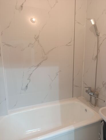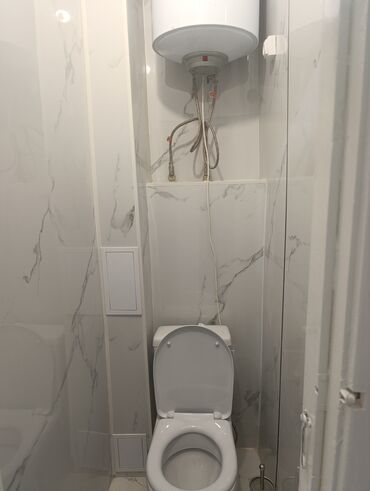 - Санузел раздельный. Ванная комната с акриловой ванной, настенными панелями под мрамор, смесителем с душем‑лейкой. Туалет с унитазом и накопительным водонагревателем (бойлер) над инсталляцией, панели под мрамор, санитарные лючки.