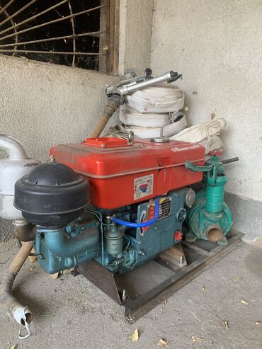 Передвижная дизельная мотопомпа на раме с колесами. Описание: - Дизельный одноцилиндровый двигатель с ручным запуском, установлен на металлической тележке с четырьмя колесами для перемещения по уч...