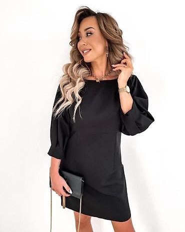 Черное платье BONOPHARD Istanbul - Элегантный силуэт с расклёшенным низом - Глубокий квадратный вырез - Длинные рукава из мягкой текучей ткани - Широкие манжеты с декоративными металлическими пуго...
