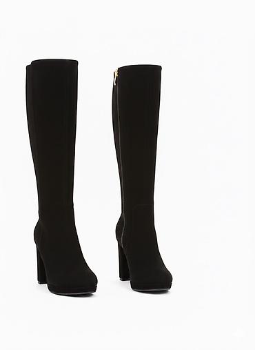 • Высокие женские сапоги из замши - Цвет: глубокий чёрный - Материал