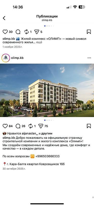 Продаю 2-х комнатную студийную квартиру , общей площадью 51,5кв.м. в жилой комплекс «ОЛИМП», г. Кара-Балта, квартал Ковровщиков 16б.