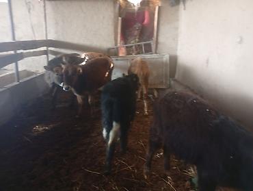 Бычки 3 голв большому 2 месяц маленьким 1 месяц молоко пьет, сено кушает, драблёнку кушает. рост большой 86см маленькие 75см, Кара-Балта село Экин-Сай 🚩 цена за большому 60т,маленьким 45т. в круг 140