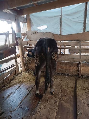 Бык мясного направления. - Окрас: черный, без белых отметин - Возраст по виду: молодой взрослый - Биркованный, с верёвочным недоуздком - Содержится на привязи в крытом стойле, удобный доступ к кор...