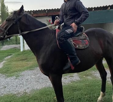 Продаю жеребец 3 года, крупный широкий мать рысак отец англичан, скорость, толкается хорошо обучен на улак 250 000 сом