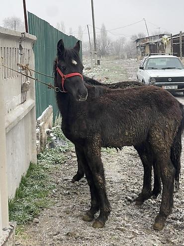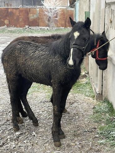 Молодые жеребцы, масть ворона с белой отметиной на лбу. На фото — пара однотипных лошадей с плотным костяком и крепкими ногами. Удобные для дальнейшего выращивания и работы: перспективны под упряжь и верховую езду. Спокойный характер, контактные, ходят в недоуздках. Подходят для хозяйственных нужд, обучения, активного отдыха.