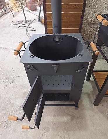Продаются мангалы в большом количестве. Мангал + большая печь под казан. Размер жаровни :11 см толщина 3мм, в комплекте савок и кочерга. Цена строго окончательная, оптовая. Доставка до Бишкека бесплатно.
