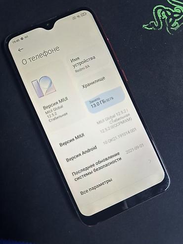 - Память устройства: указано занято 13.0 ГБ (общий объём хранилища соответствует версии Redmi 8A)